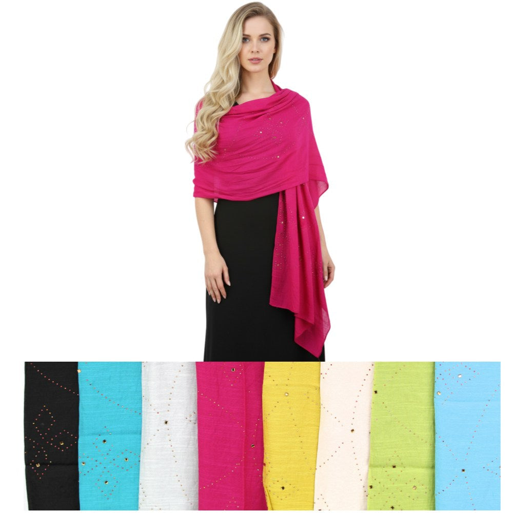 12 Pack Women Oblong Lightweight Rhinestones Scarves Shawls 3010
