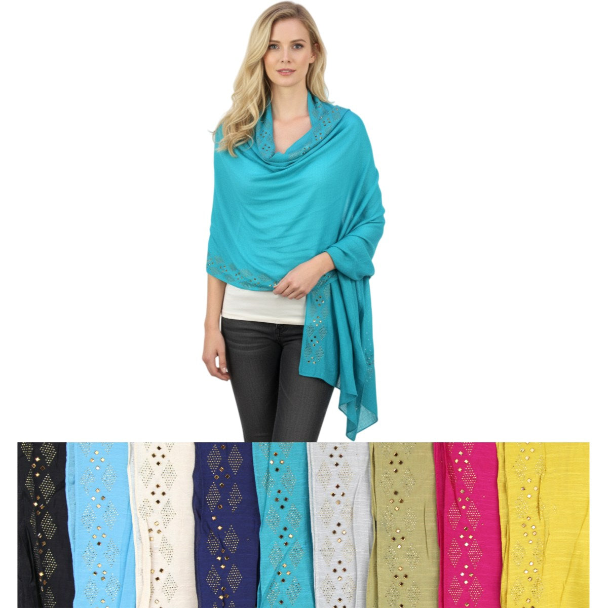 12 Pack Women Oblong Lightweight Rhinestones Scarves Shawls 3011