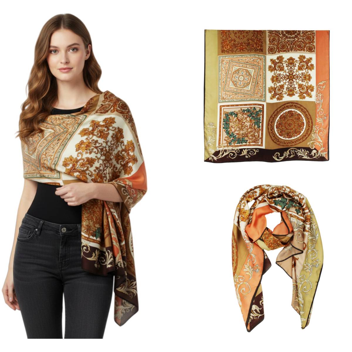 - SUITABLE ACCASION - This large square scarf features a colorful print on a satin background. Perfect for matching any outfits in daily life, parties, weddings, traveling, ceremonies, and cool evenings.