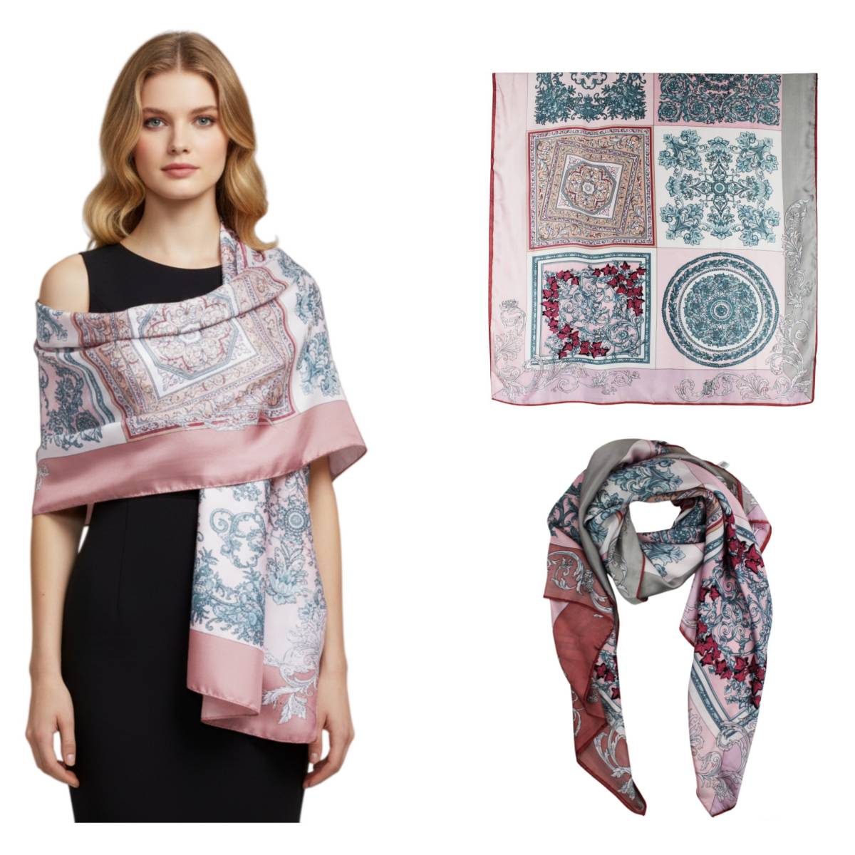 - SUITABLE ACCASION - This large square scarf features a colorful print on a satin background. Perfect for matching any outfits in daily life, parties, weddings, traveling, ceremonies, and cool evenings.