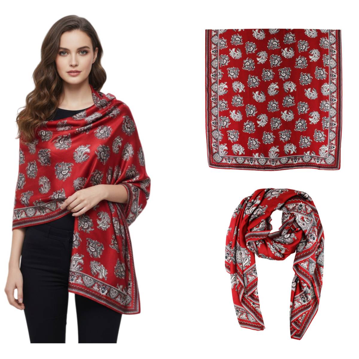 - SIZE - 35x78 inches oblong scarf warp. Smooth and shiny fashionable for women.