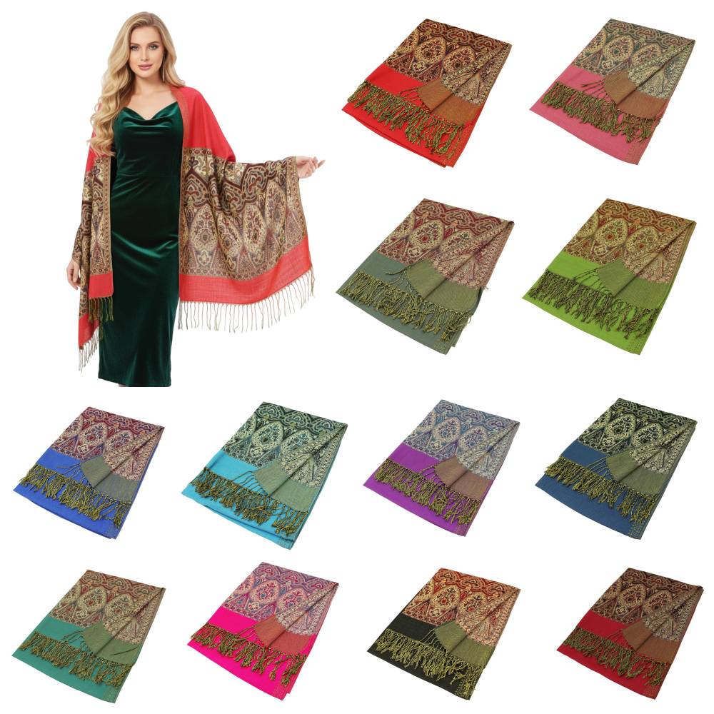 12-Pack Metalic Pashmina Shawsl Assorted Colors 081