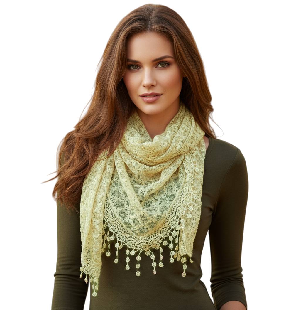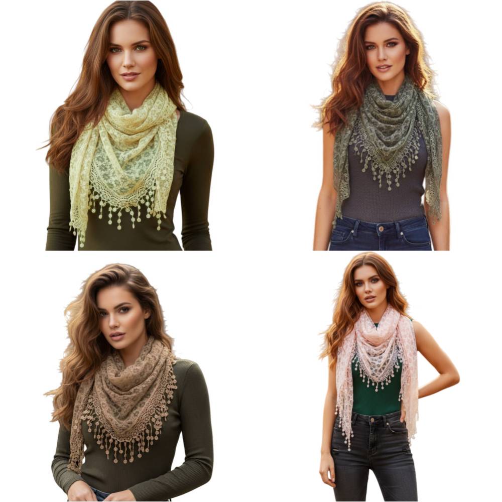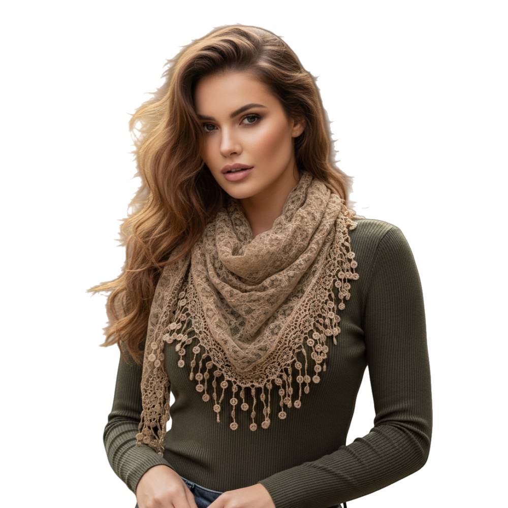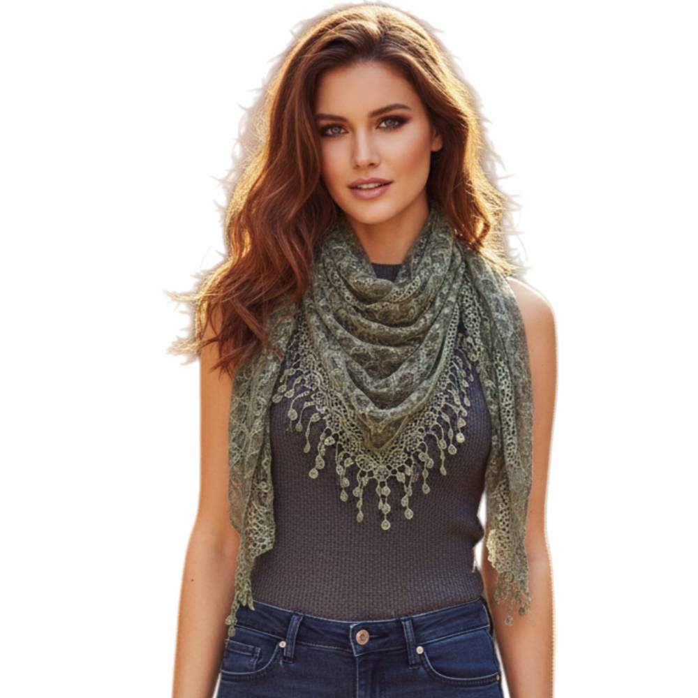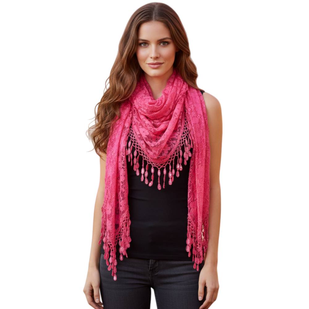 Fashion Lace Tassel Sheer Triangle Lightweight Scarf